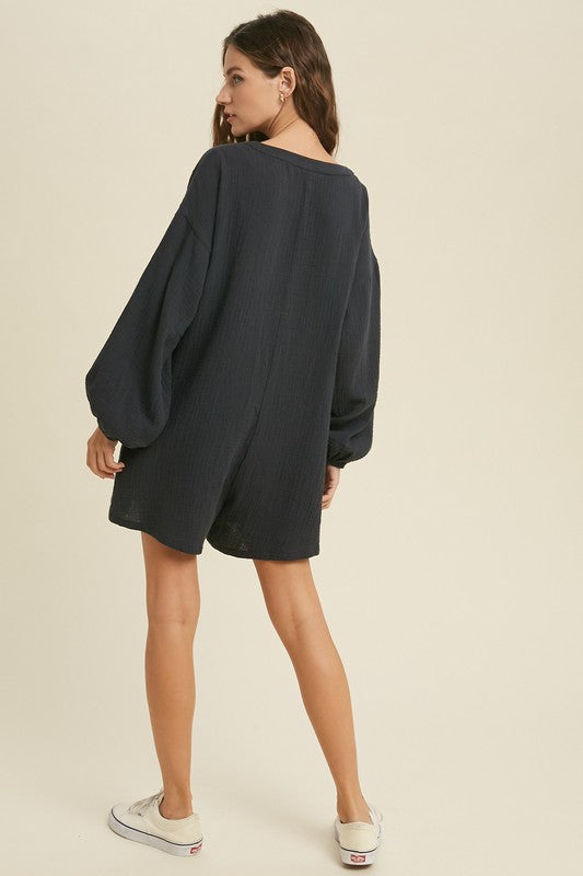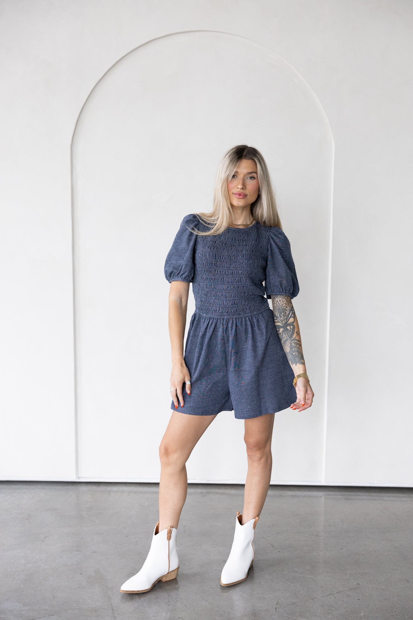 Alyssa Suede Puff Sleeve Romper FINAL SALE