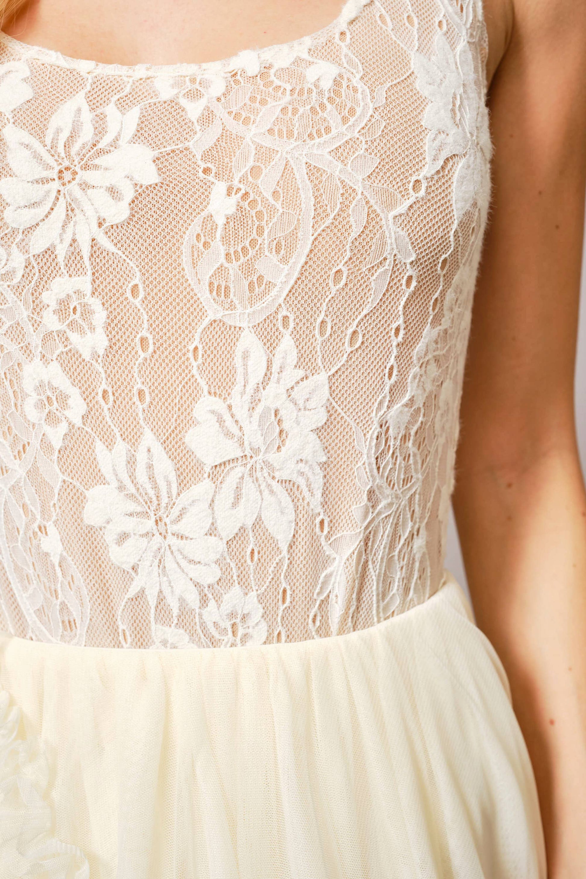 Lace bodysuit featuring mesh lining, a scoop neckline, and a low back for an elegant touch.