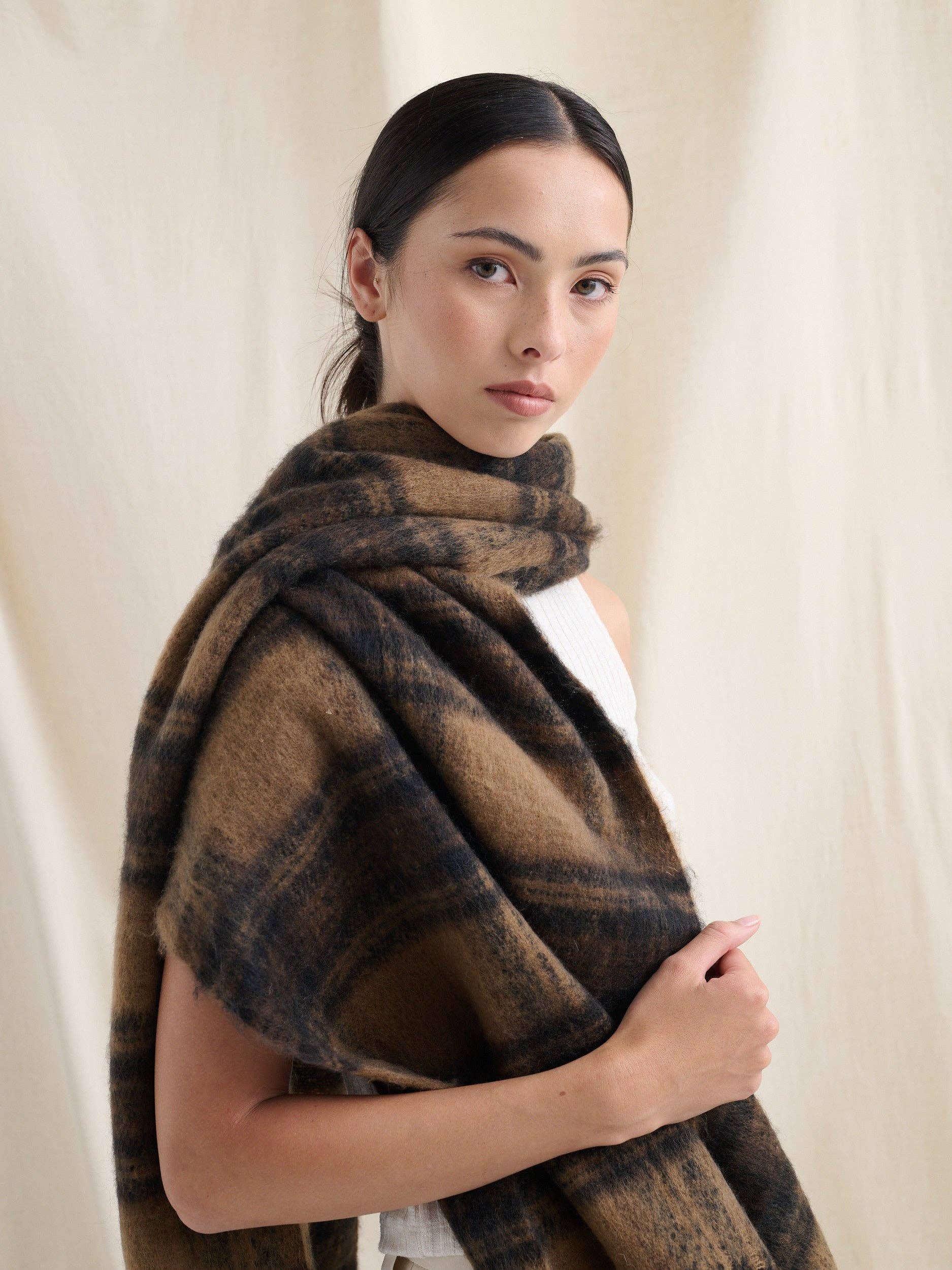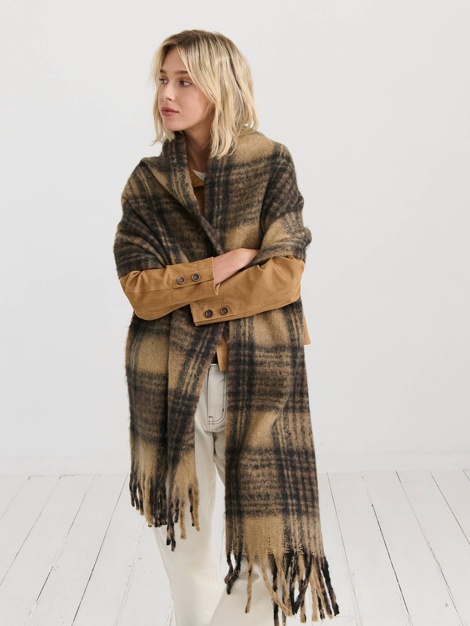 Soft, fluffy oversized plaid scarf. Perfect piece to add warmth and style for fall and winter.