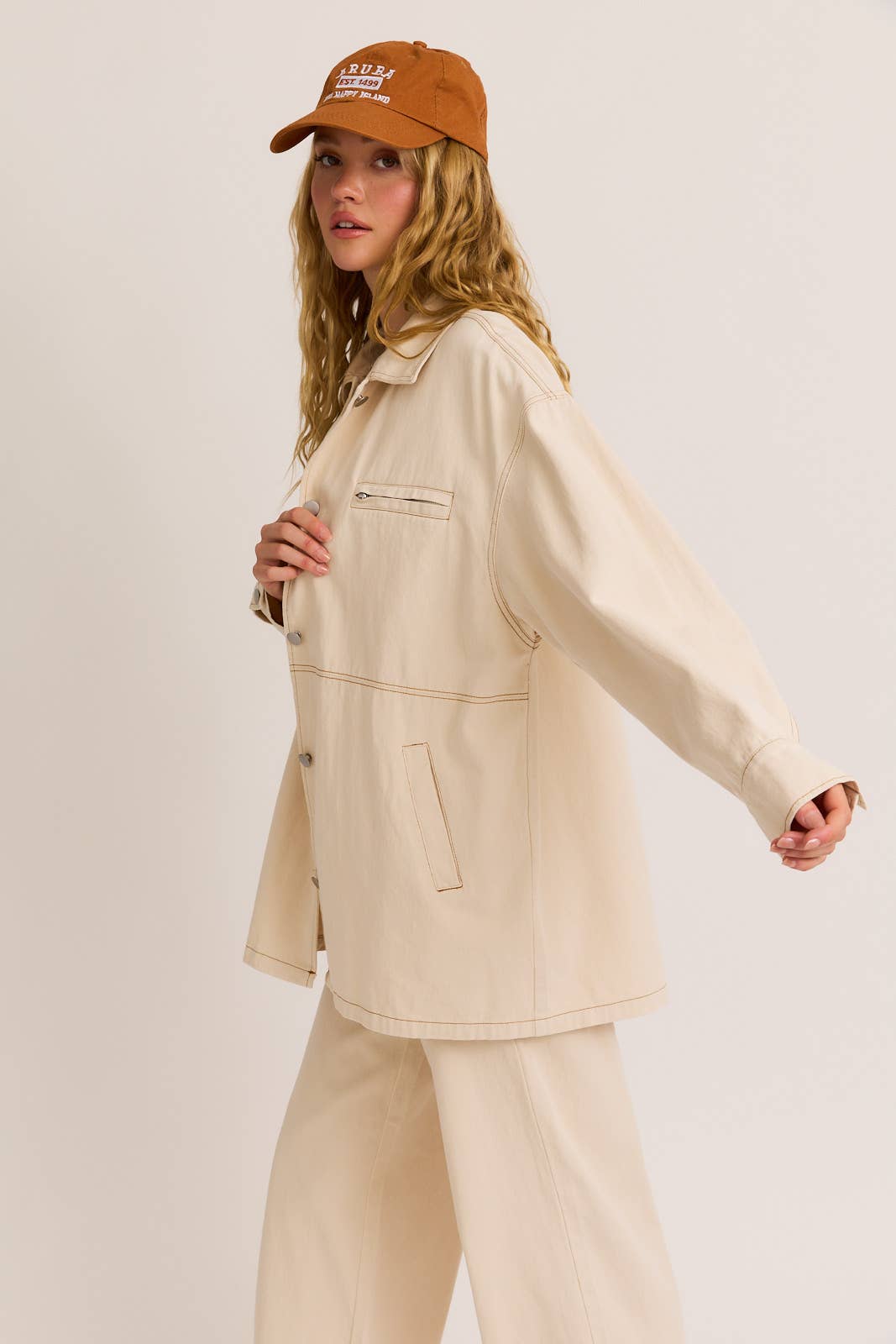 Oversized, lightweight cotton shirt jacket.