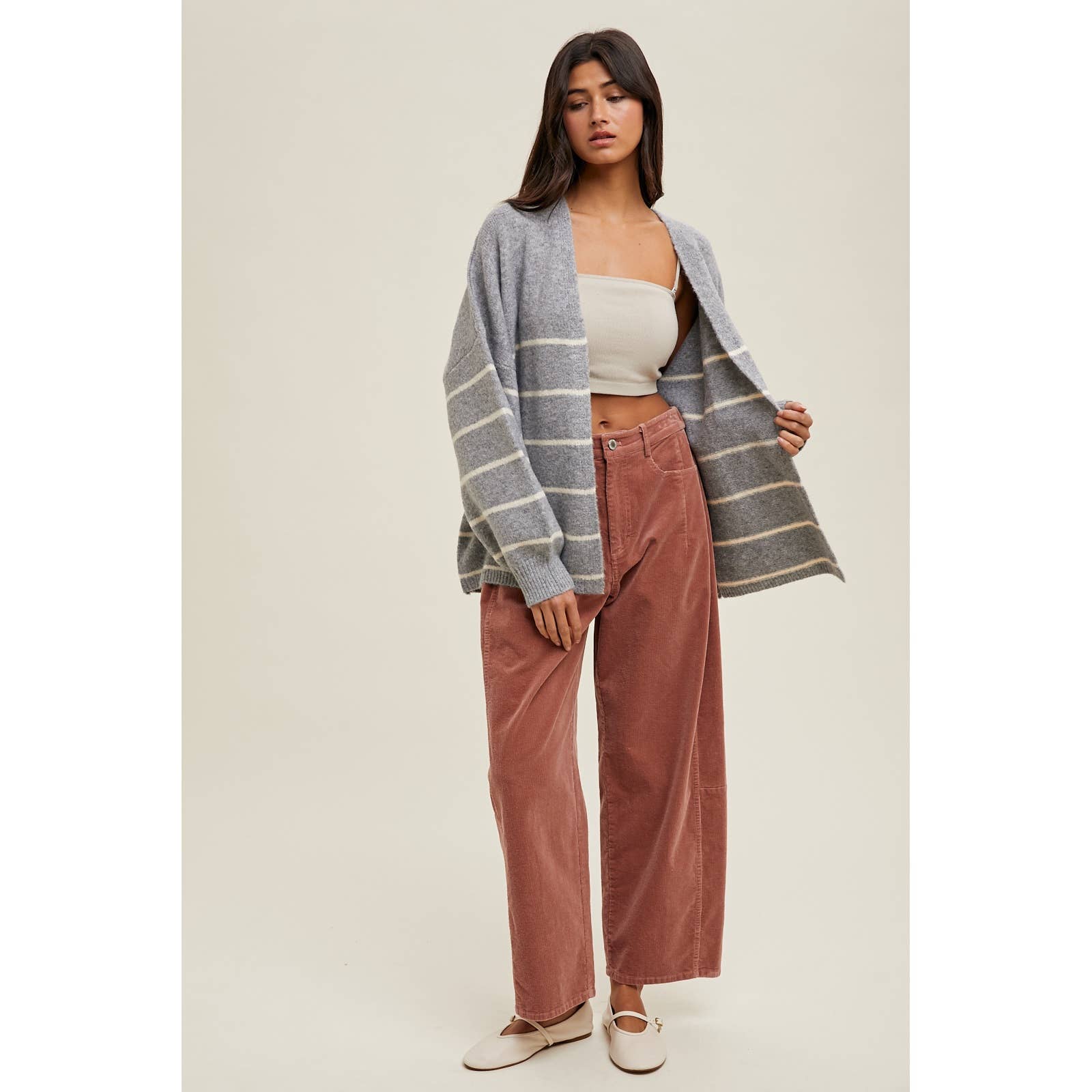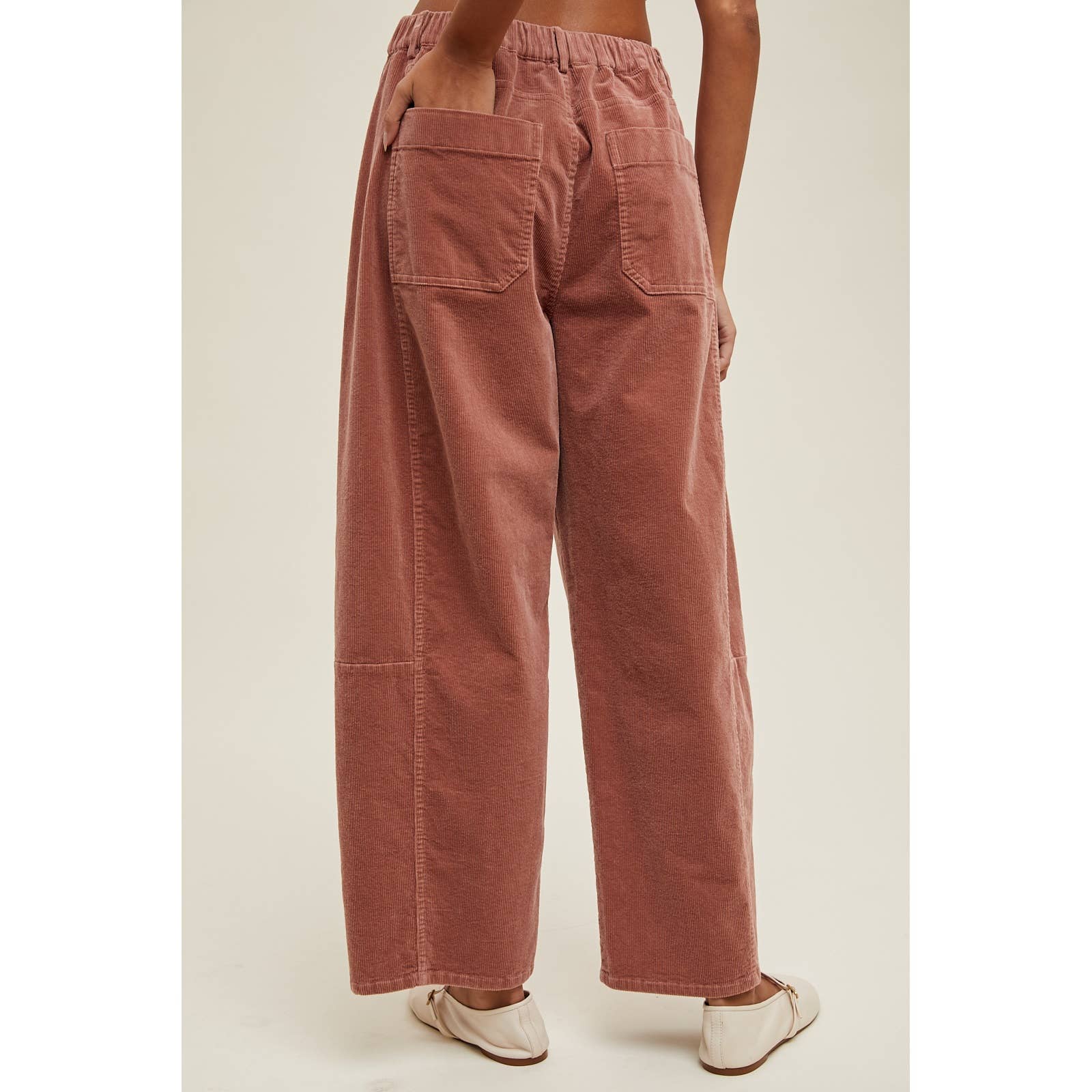 Cropped wide leg, relaxed fit corduroy pants.