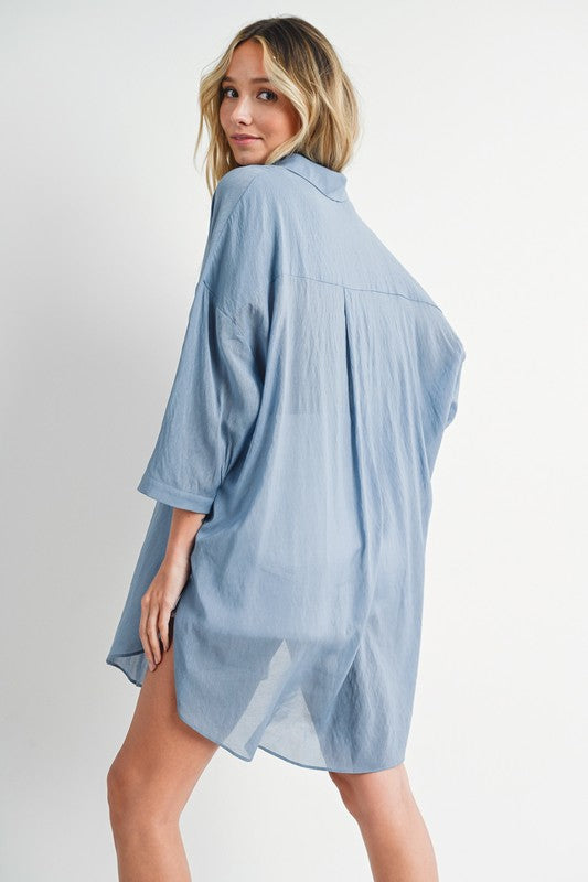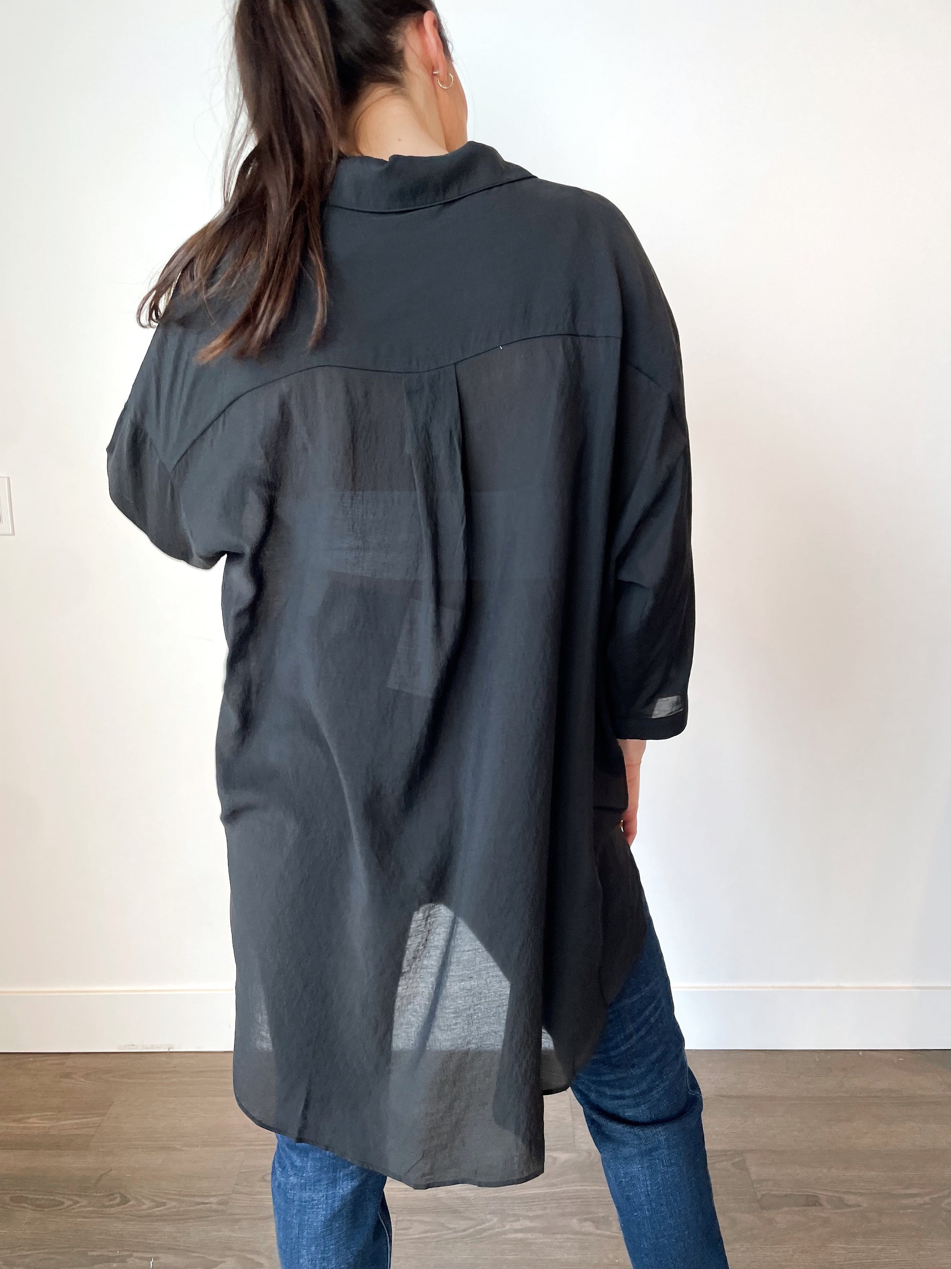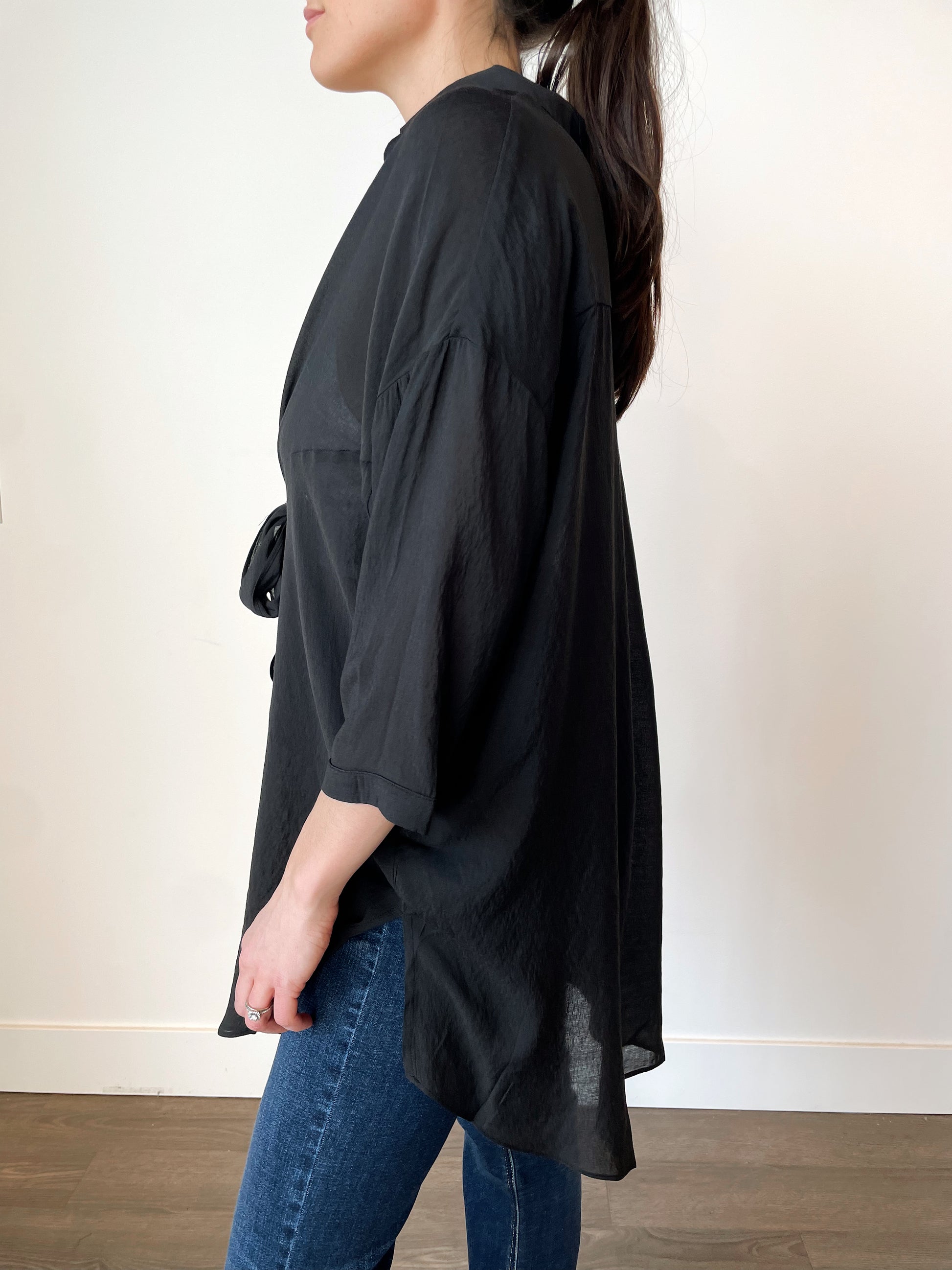 3/4 sleeves, drop shoulder.