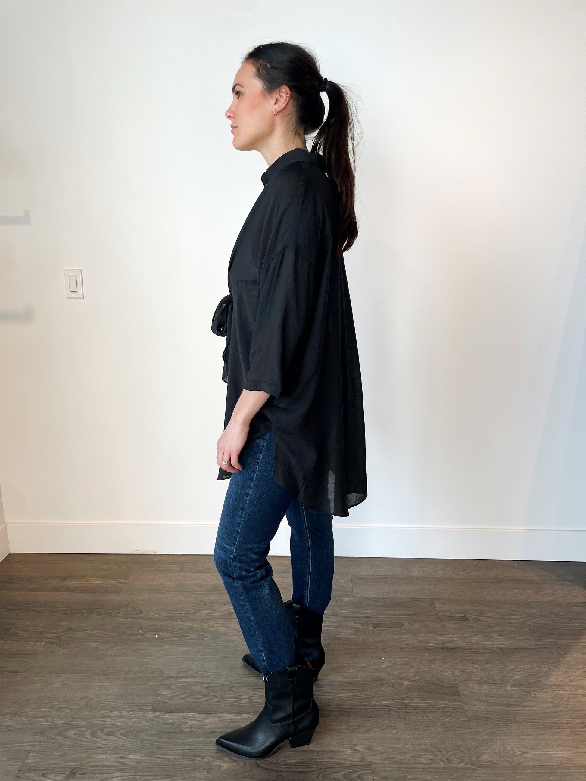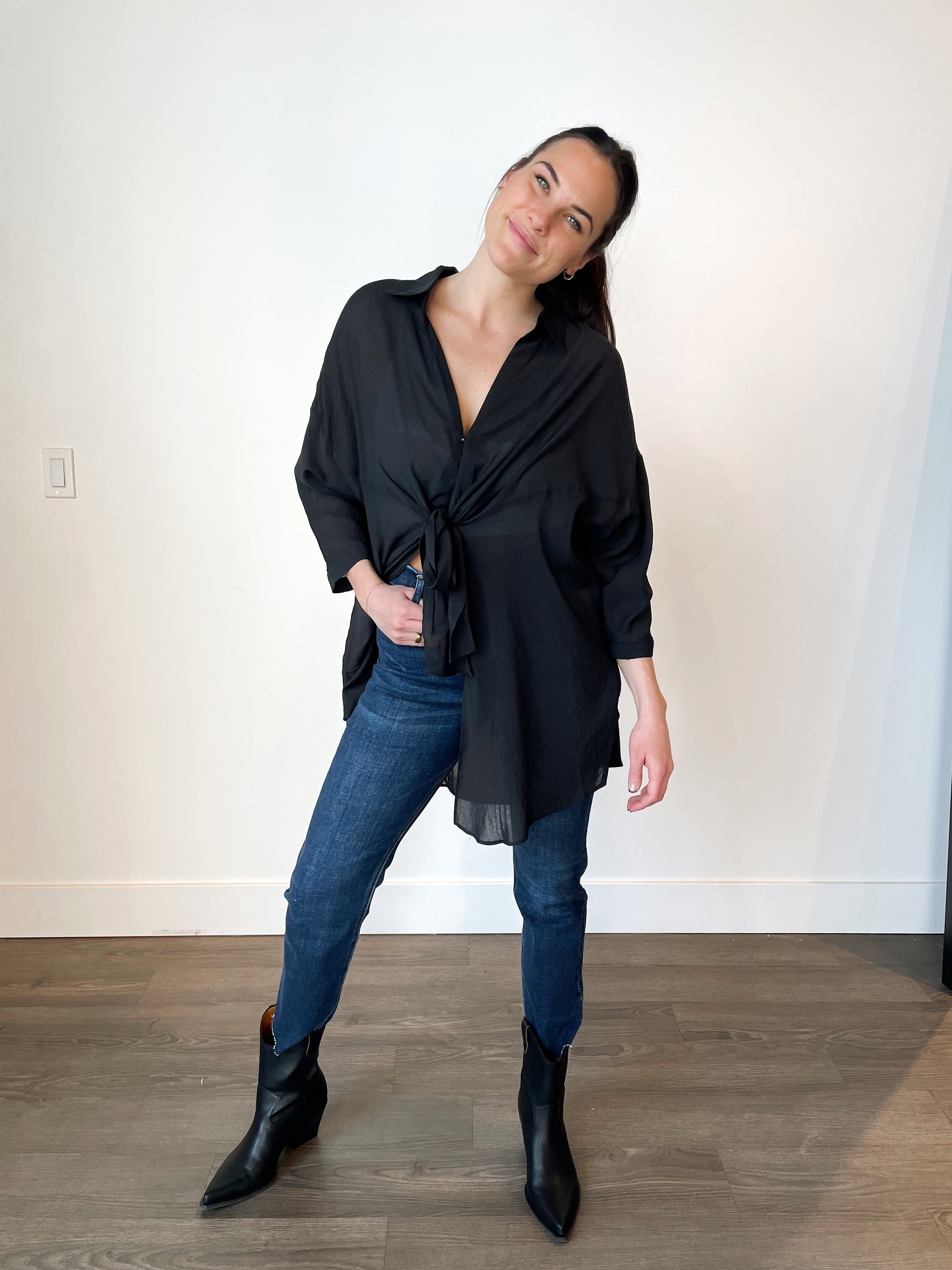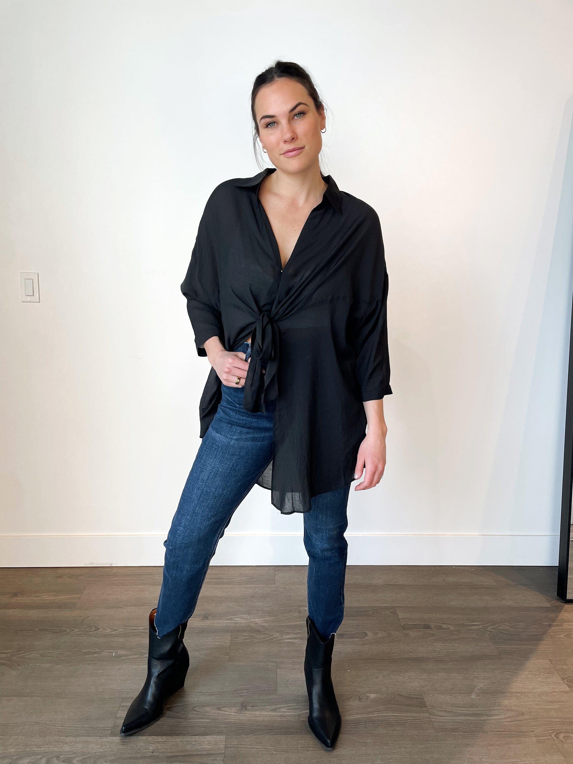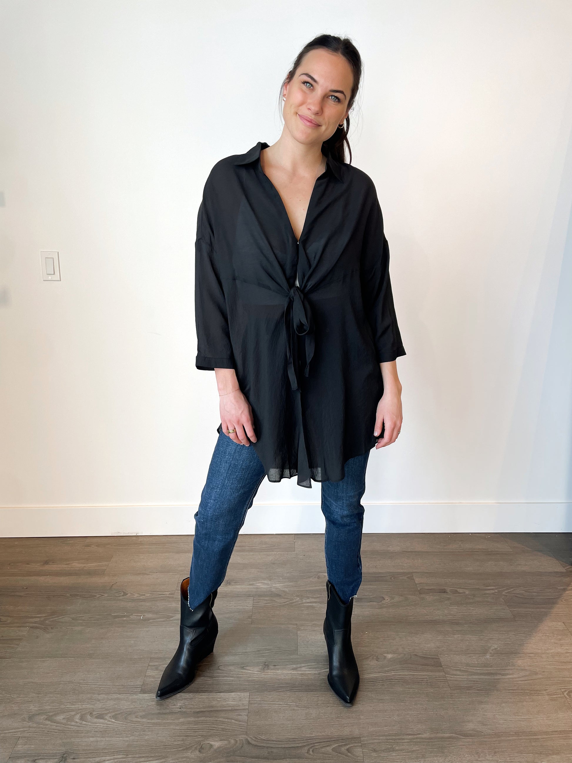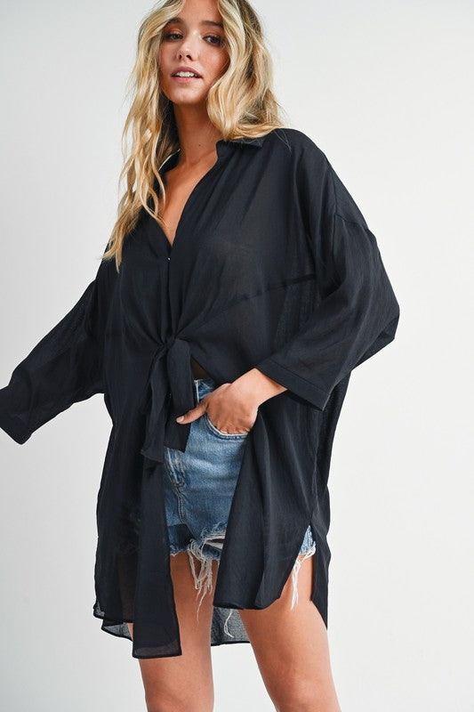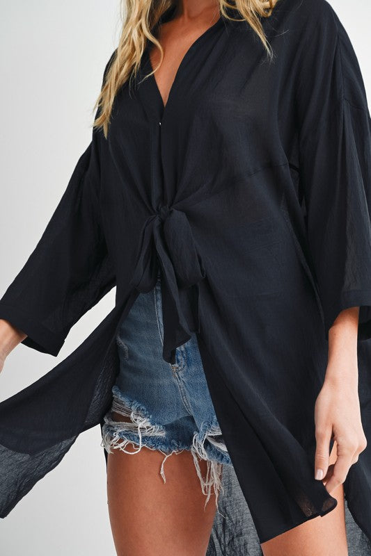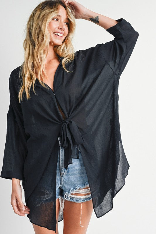 Lightweight blouse with tie-front detail.