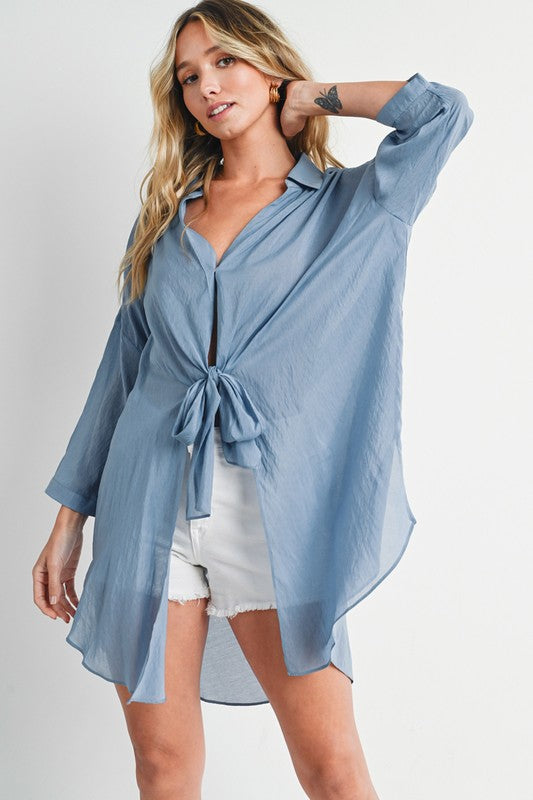Dalton Tie-Front Dolphin Hem Shirt FINAL SALE