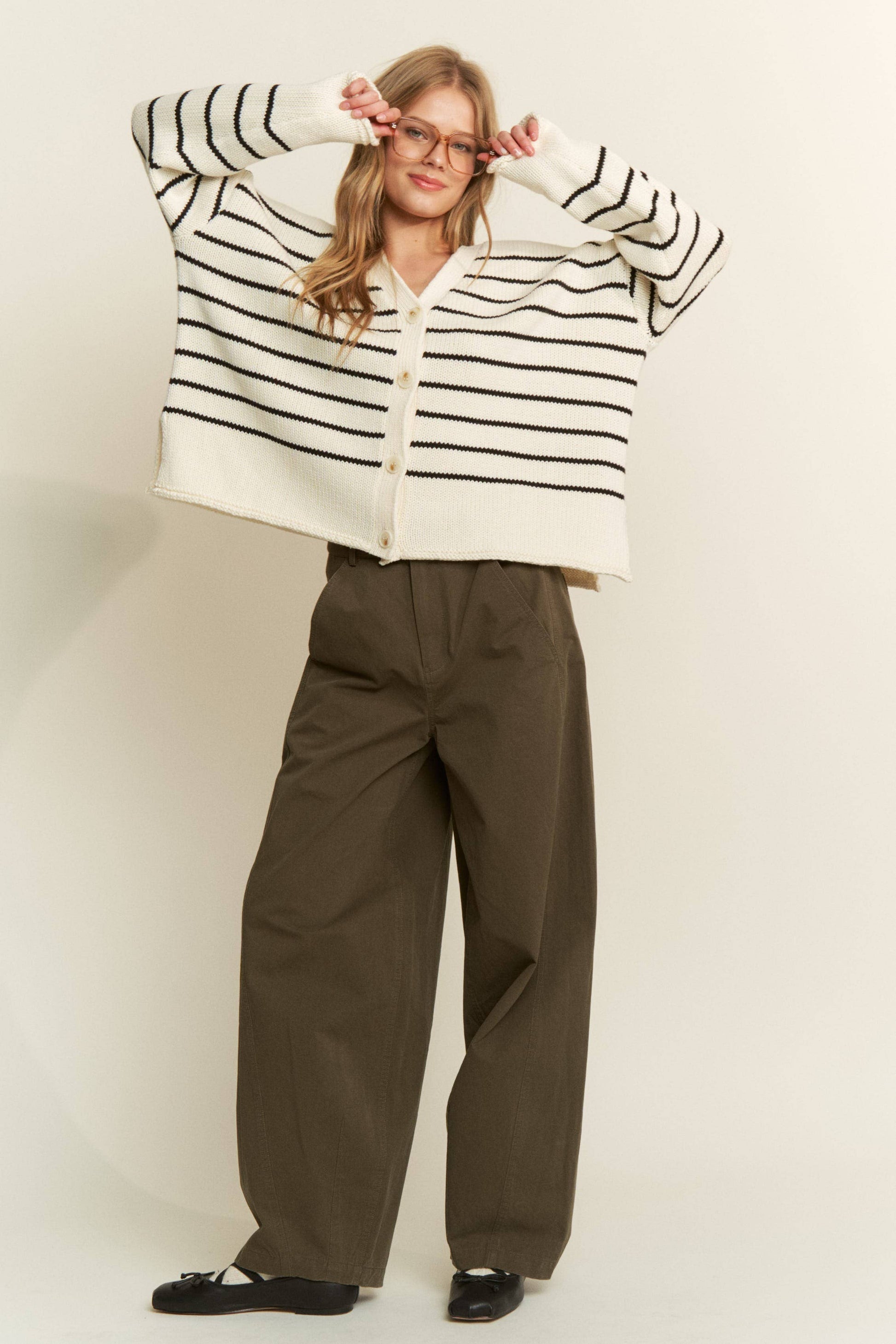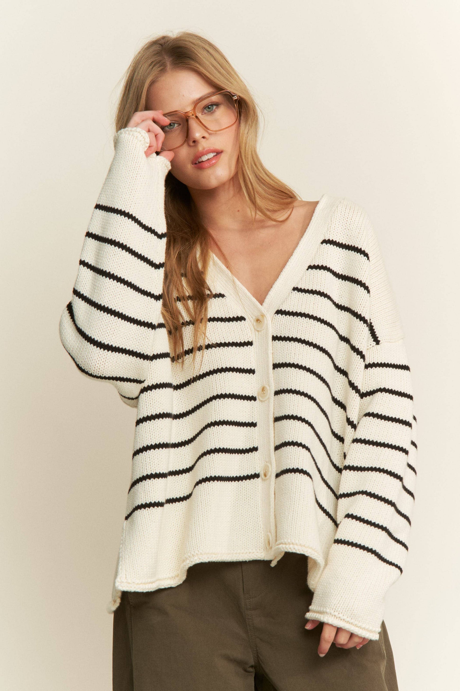 Emma Button Front Striped Cardigan