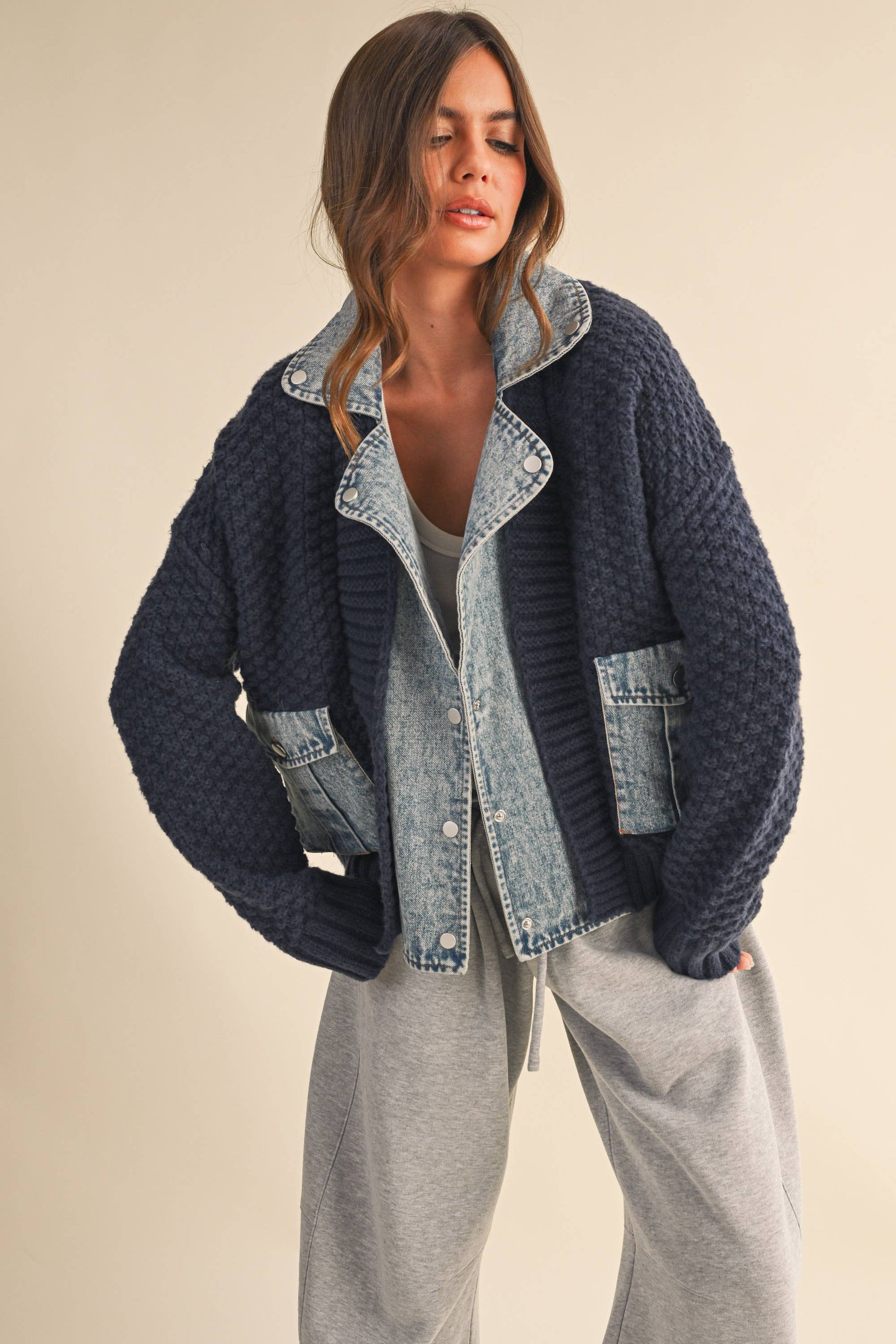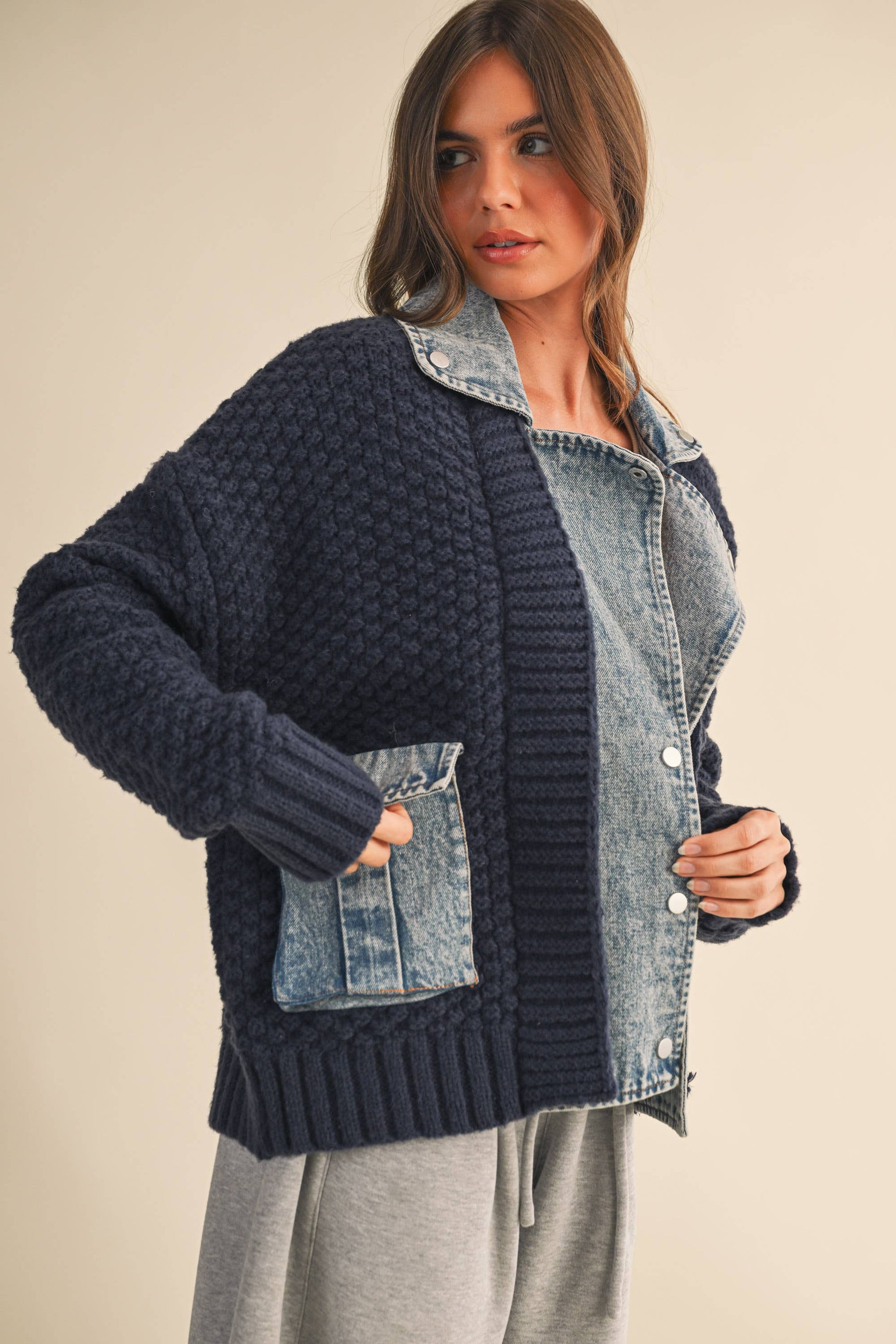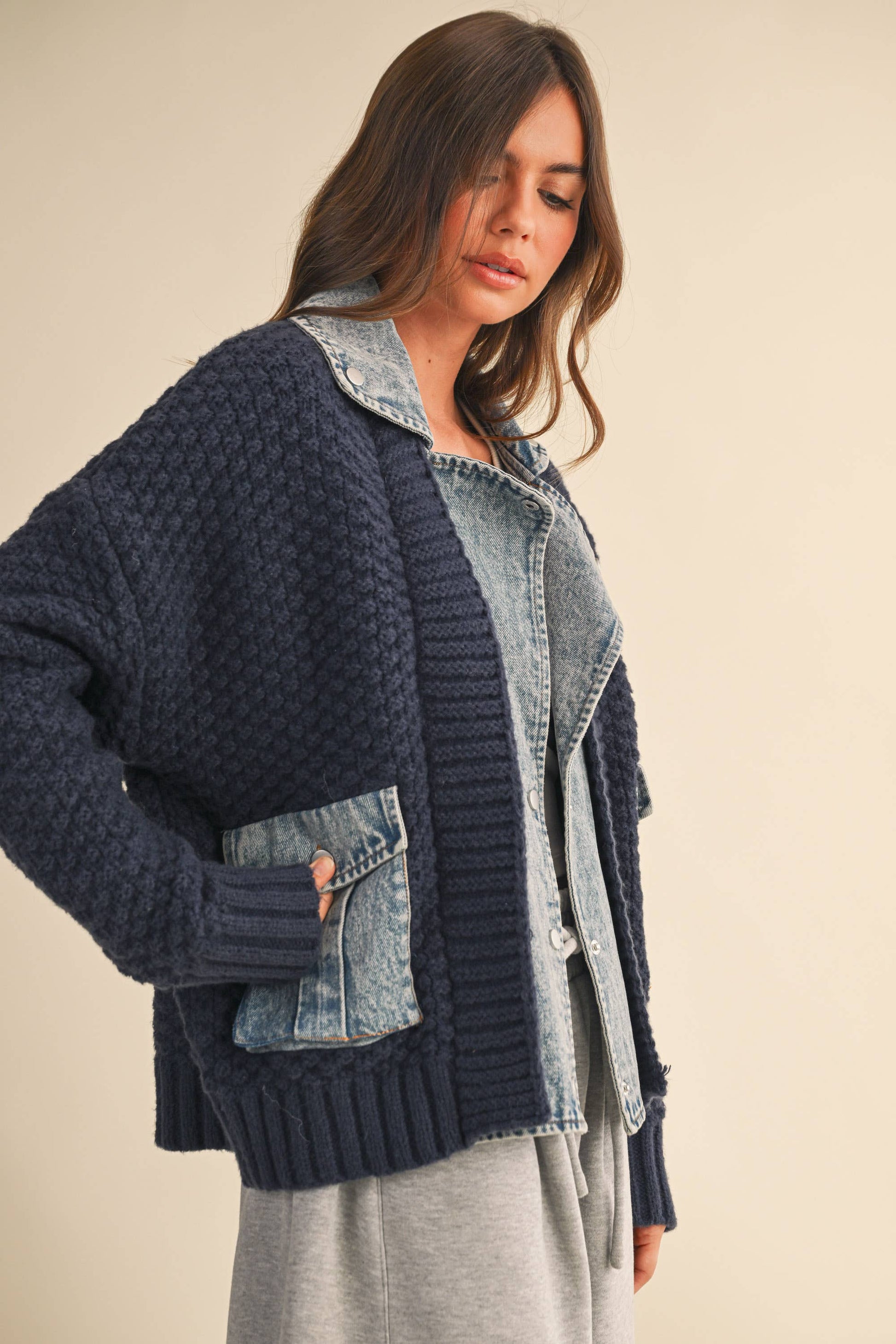 Cozy, chunky cable knit sweater that acts as a jacket.