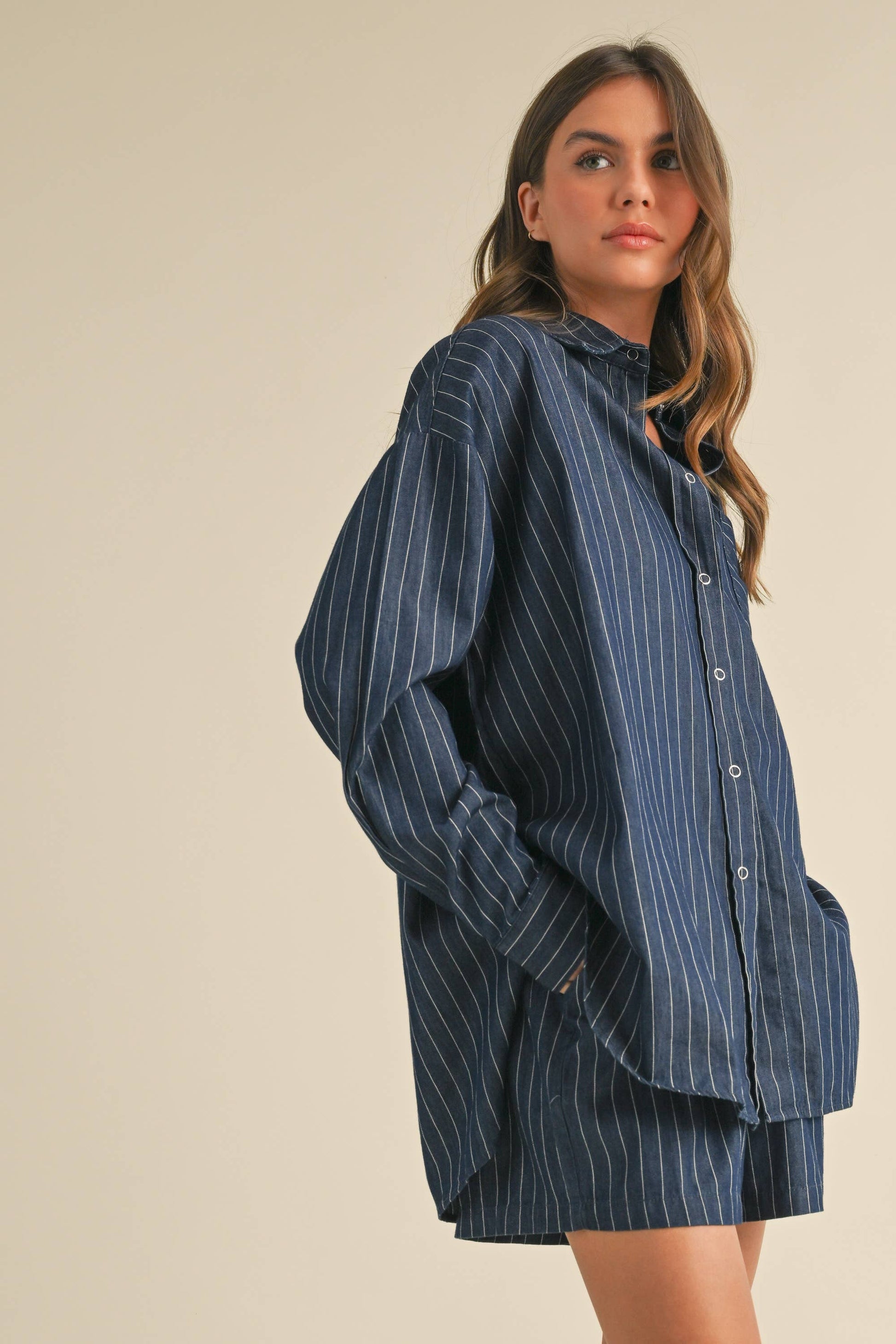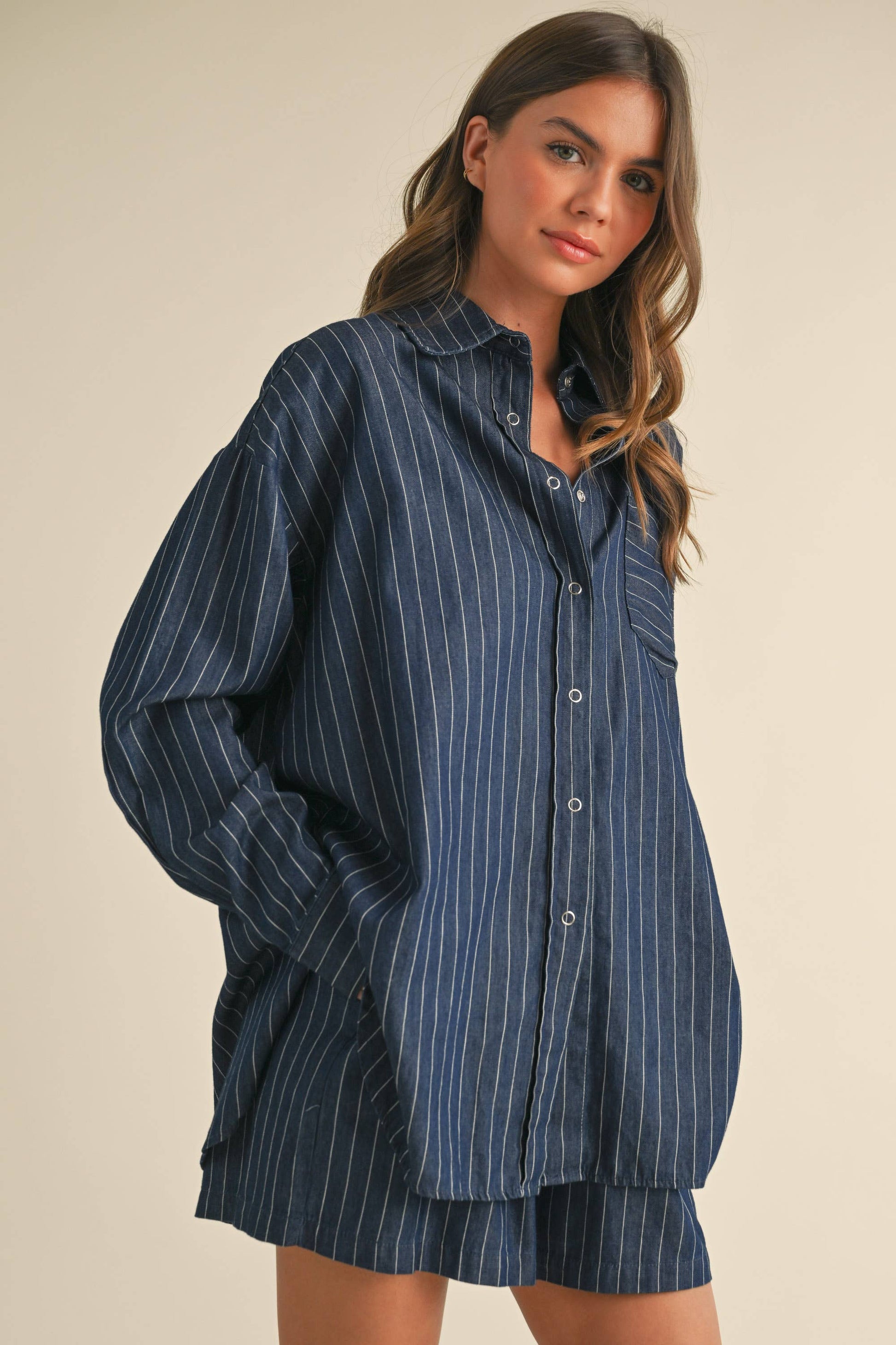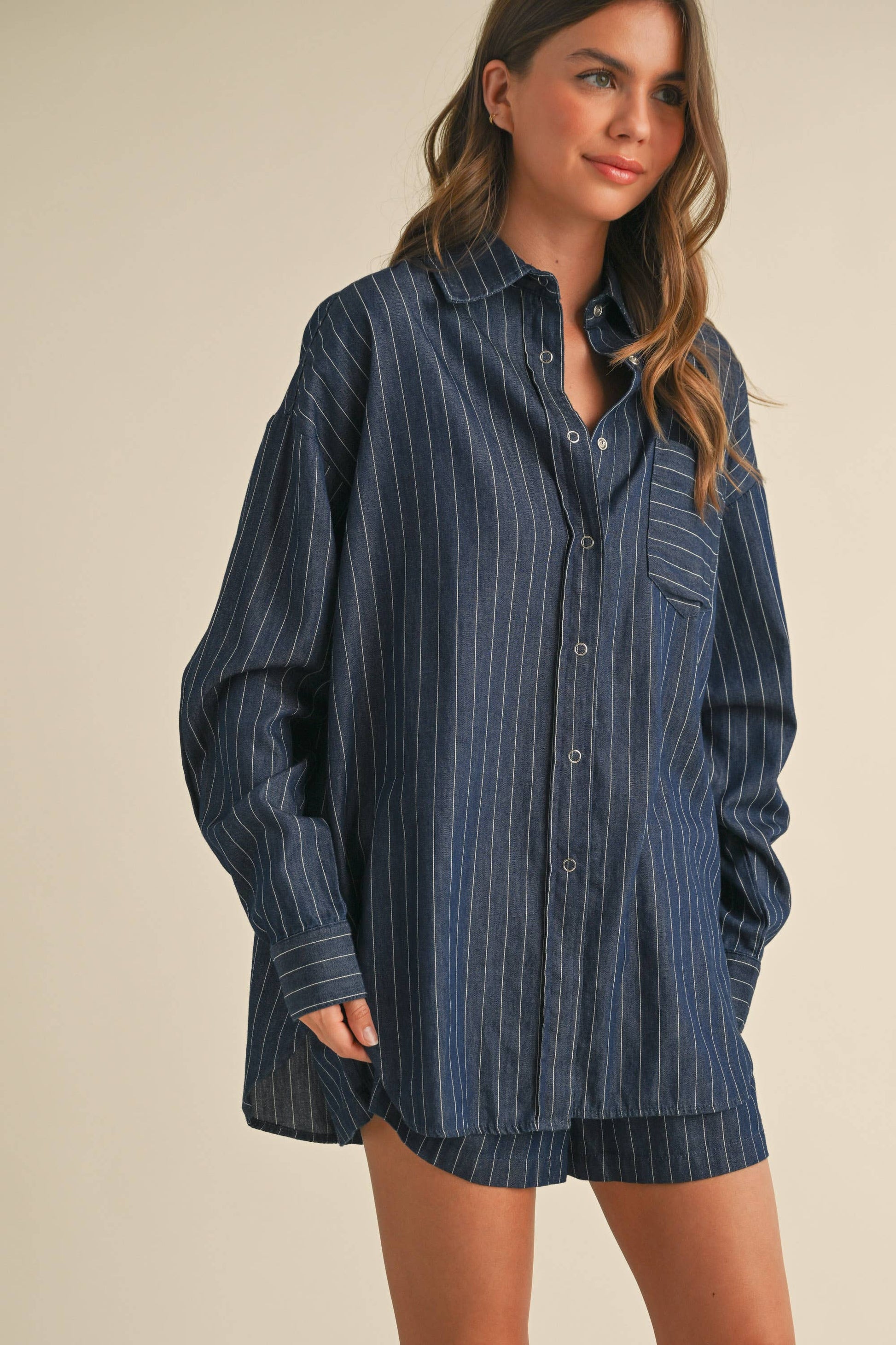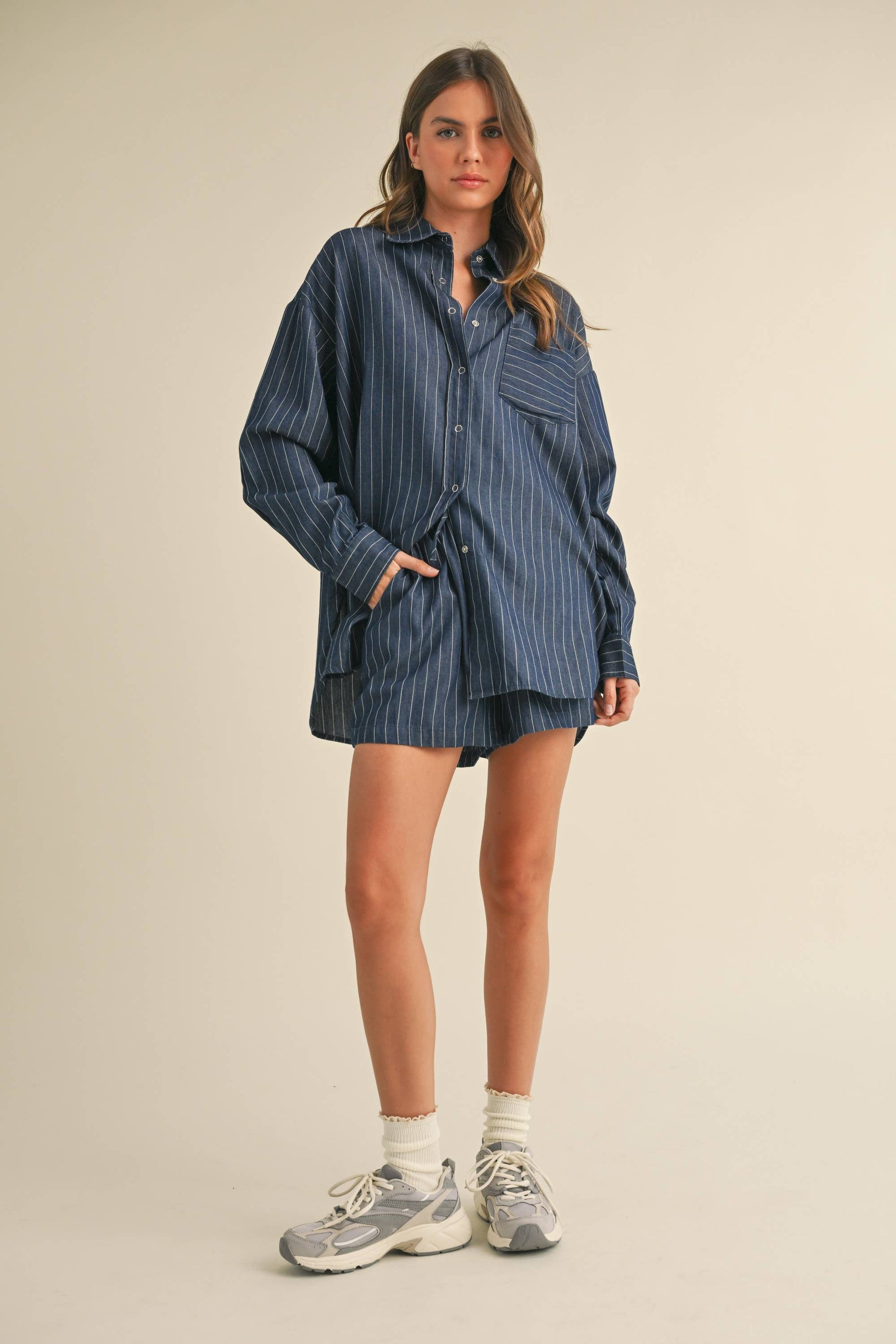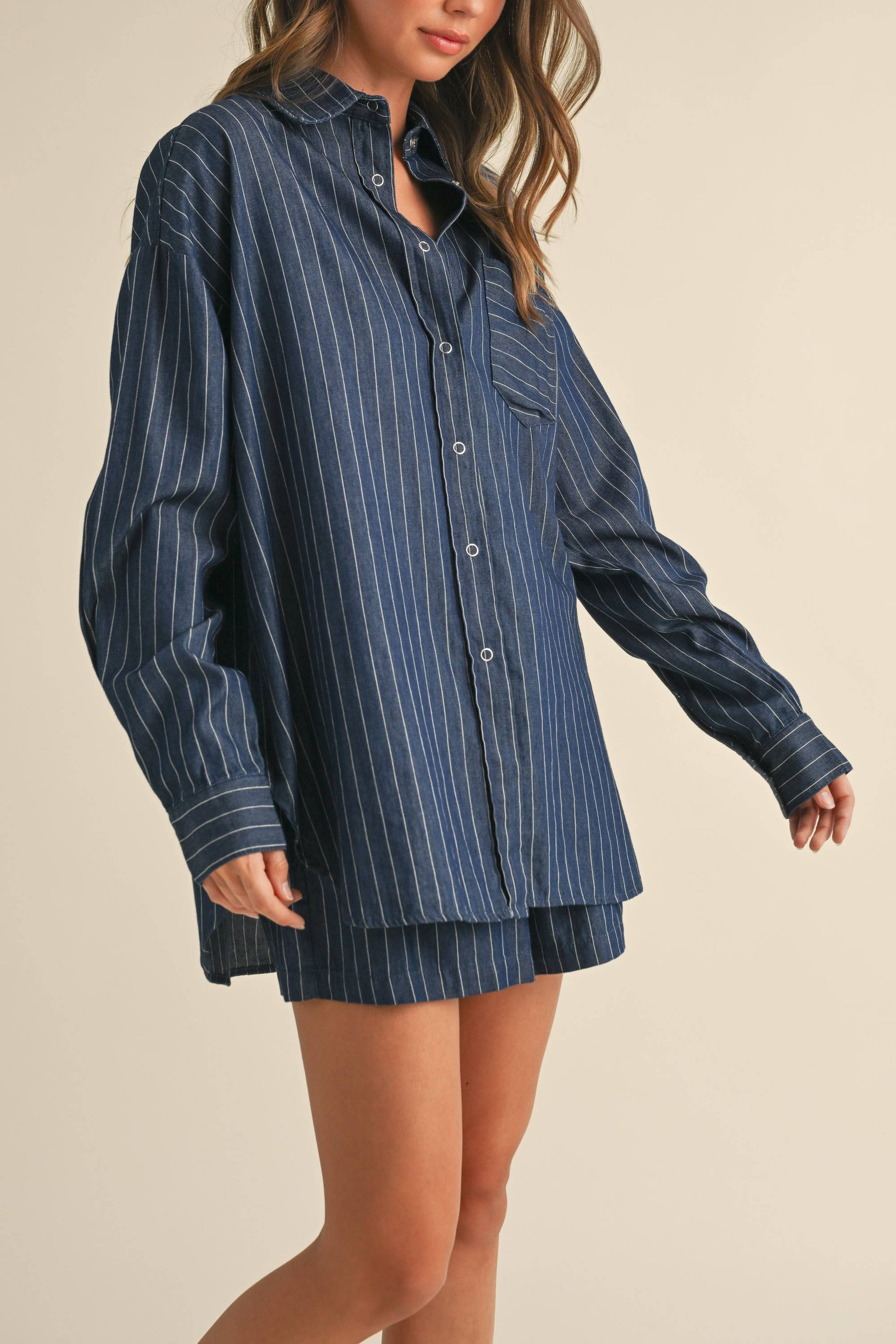 Lowry Pinstripe Button Down Top & Short Set