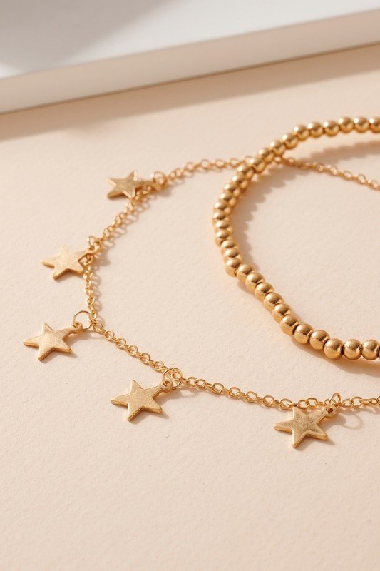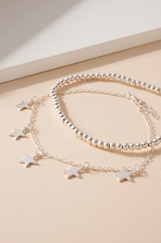 Stretchy beaded anklet with an adjustable star charm anklet.