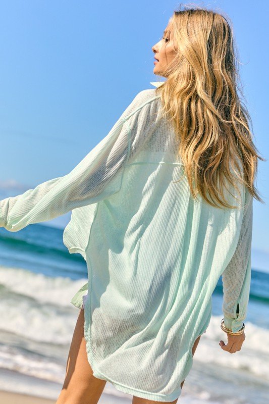 Fully functional buttons with flattering ruched detail at the bust.