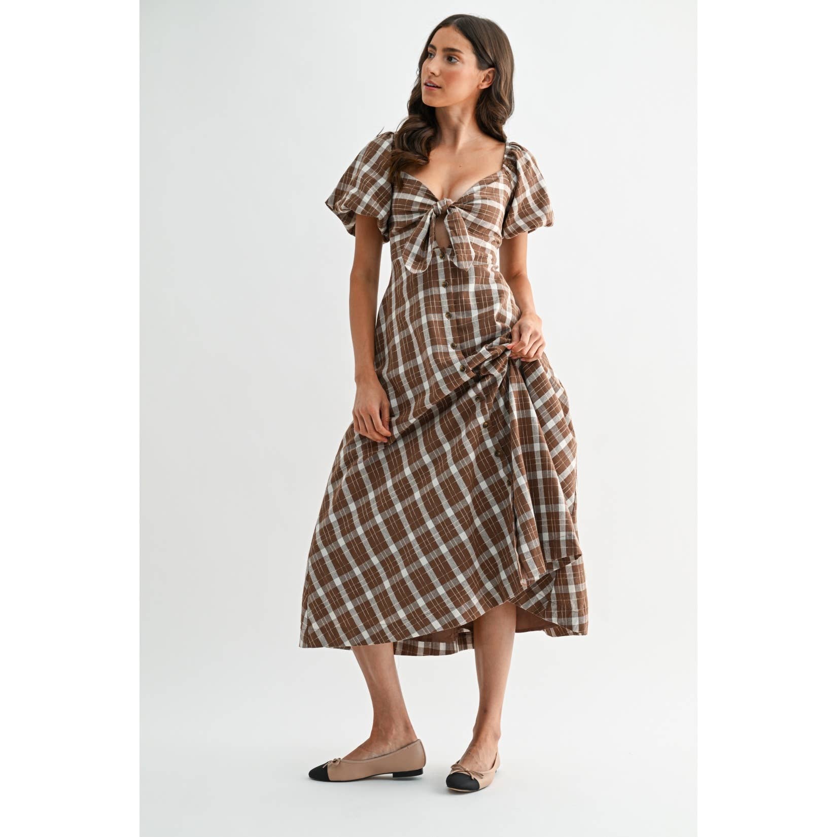 Jori Plaid Tie Front Midi Dress FINAL SALE