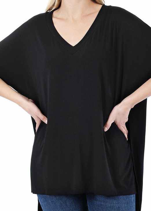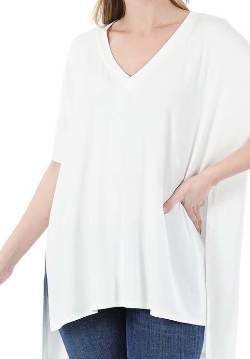 Luxe rayon v-neck tee with side slits.