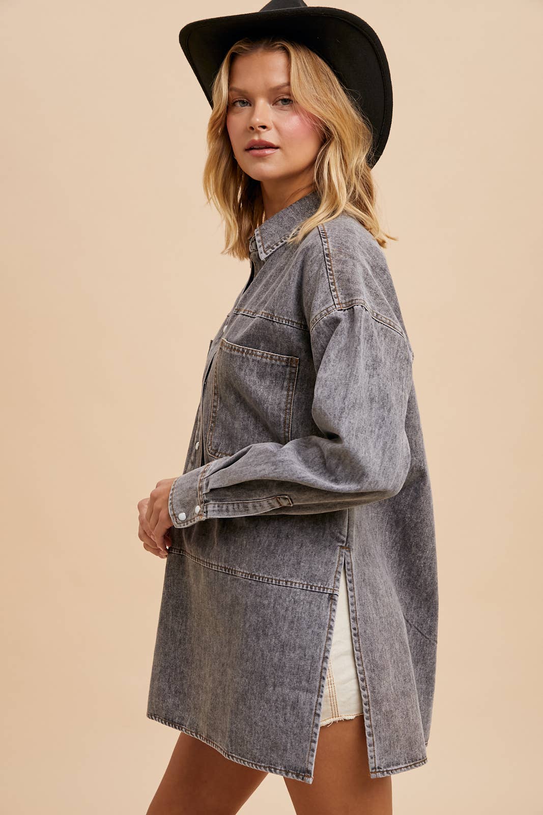 Tunic length with side slits - pairs perfectly over a satin skirt, skinny denim, or shorts in the spring.